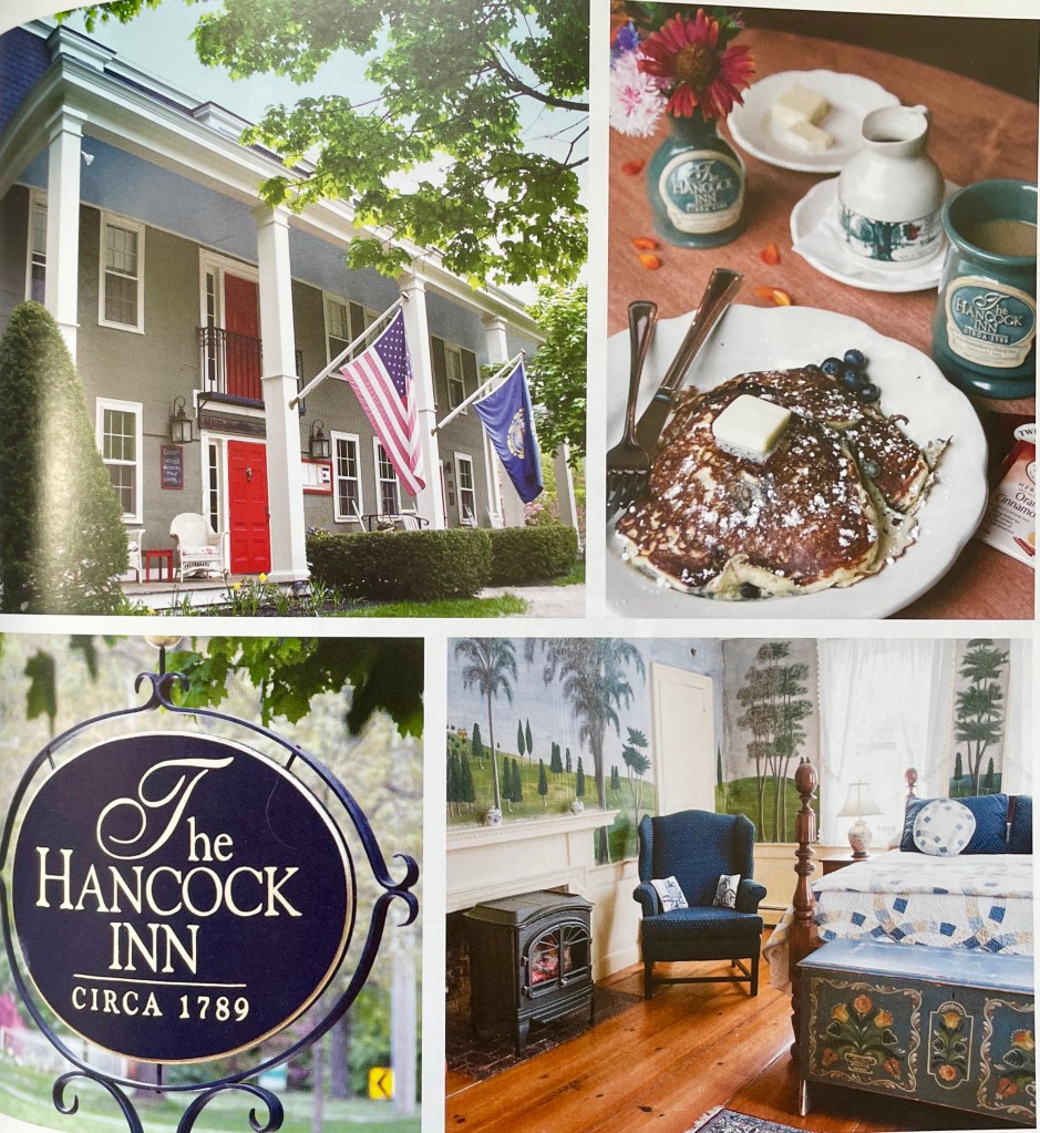 Hancock Inn. As an alternative to the barrage of nature and adventure activities in the White Mountains, I offer the low-key option of heading south along curvy country roads to New Hampshire’s Monadnock region. Here you will find vast woodlands, mountain views and small town charm to spare (the town of Peterborough was the inspiration for Wilder’s play “Our Town). The grey clapboard Hancock Inn is one of my all-time New England favorites, offering guests exceptional hospitality along with creaky floorboards, exposed ceiling beams and 14 handsome rooms. Rates include breakfast and the onsite Fox Tavern tempts with New England classic dishes like pan seared duck breast and parsnip puree or roast pork loin with sweep potato hash.